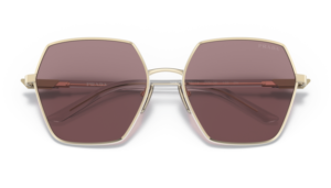 Refinada y contemporánea, esta gafa de sol Prada combina la elegancia del metal con la calidez y el confort de las varillas de metal fino. Su diseño destaca por líneas limpias y una estructura ligera que ofrece una estética sofisticada y moderna.